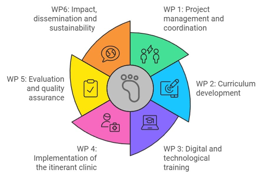 - Βελτίωση της παροχής φροντίδας προς διαβητικούς ασθενείς με «πόδια υψηλού κινδύνου», διασφαλίζοντας ότι οι ευάλωτες κοινότητες ωφελούνται άμεσα από τις δράσεις του έργου μέσω στοχευμένων εκπαιδευτικών παρεμβάσεων.